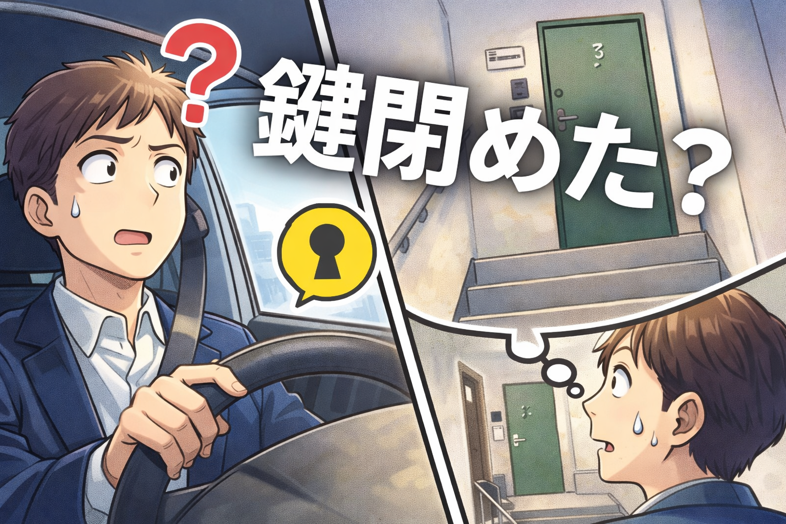 「あれ?玄関の鍵、閉めたっけ???」