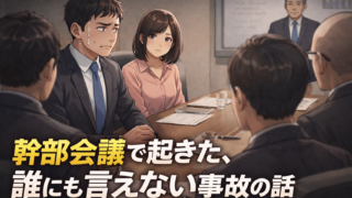 臭いトラブル 幹部会議で起きた、誰にも言えない事故の話 今日は月イチの幹部会議。数ある会議の中でも、一番緊張するやつだ。しかも今日は、隣の席に気になるあの子が座っている。ただでさえ張り詰めた空気なのに、緊張が二重にかかる。会議が始まった。資料の説明、数字の話、真面目な空気。その最中、異変が起きた... 2026.01.15 臭いトラブル